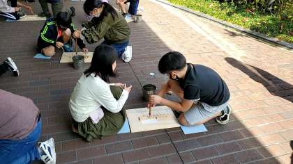棒を引いて火種をつくる体験です。