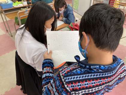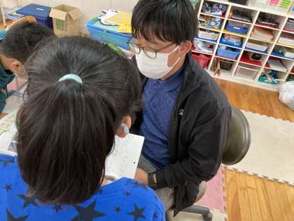 遠足の作文を書き、いろいろな先生に聞いていただきました。魚が水槽の下でじっとしていて寝ていたみたいだったこと、ジンベイザメが大きすぎて水槽が壊れそうだったことなど、面白い感想が聞かれました。