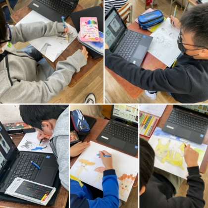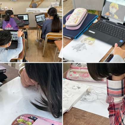 今日のゲーム・漫画クラブは前回から描いているイラストの続きを描きました。