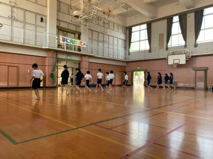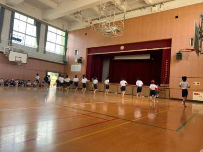 体育参観での団体演技の披露を終え、授業では今年度2回目のシャトルラン記録を測りました。