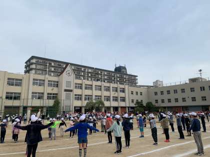 今日から児童全員で走る「かけあし集会」が始まりました。