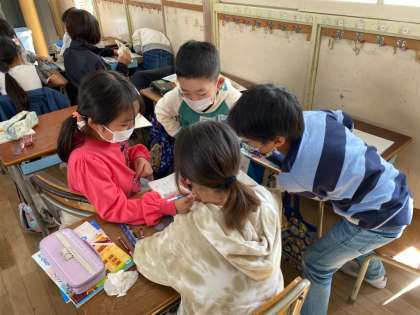 「ここは、曲がっているから四角形じゃないよ。」「でも直線は四本あるよ。」などと白熱した話し合いができていました。