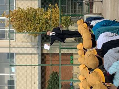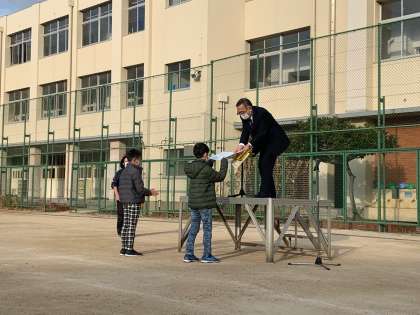 校長先生から地震についてのお話、続いてユニセフ募金の感謝状、児童の表彰式がありました。