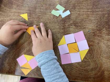 色んな形を組み合わせて、模様を作りました。