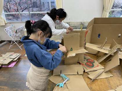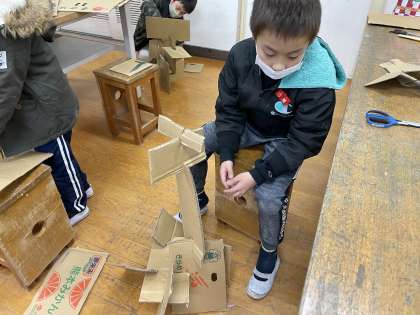 初めての段ボールカッターを慎重に扱いながら、楽しく取り組むことができました。