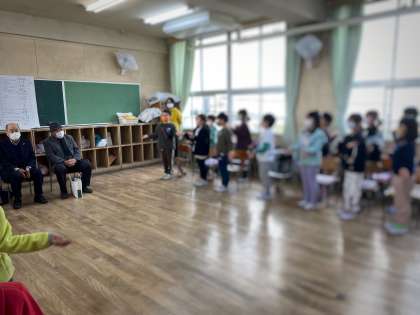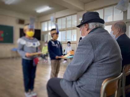 サツマイモの植え方やほりかたを教えてくださった名人に、ありがとうの会をしました。
