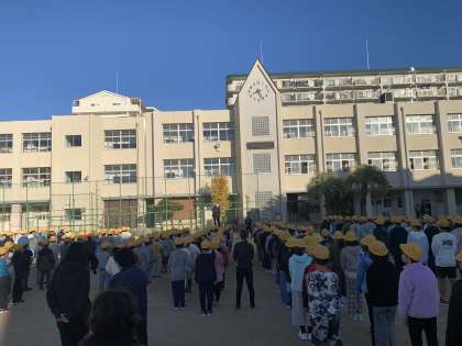 気持ちの良い快晴の空の下、全校朝会で一週間のスタートです!