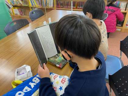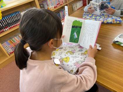 図書の時間は、すきな本を読んでいます。今日は、『あらしのよるに』の続編を読んでいる子がたくさんいました。
