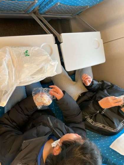 新幹線で朝食タイム