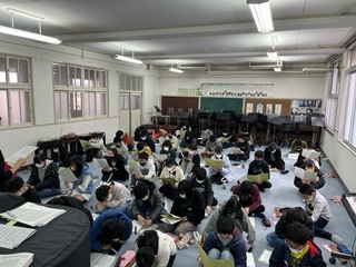 3学期のファイナルコンサート、6年生を祝う会、さらには卒業式を見通しての合同音楽をしています。