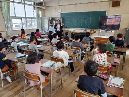 8日(金)始業式後、教室での先生のお話を少し緊張しながら聞いていました。