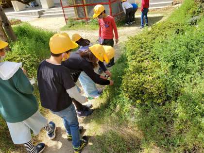 3年生は5時間目に、グループごとに校庭で「虫さがし」をしました。グループではデジカメで撮る人、虫めがねで観察する人に分かれました。植物の細かい部分まで虫めがねで虫を熱心に探す友達や、虫を見つけてデジカメで一生懸命に撮る人がいました。