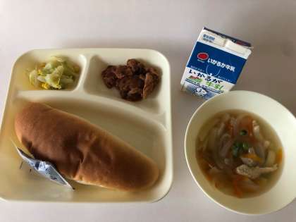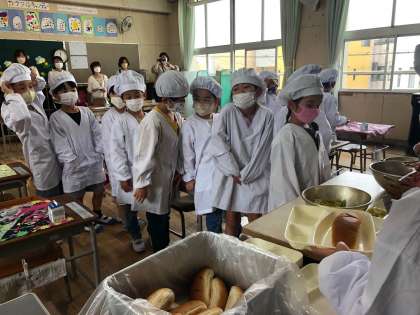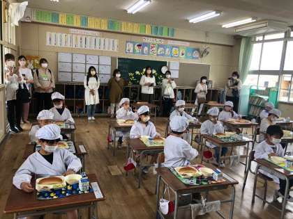 1年生の給食の準備から後片付けまで参観してもらいました。