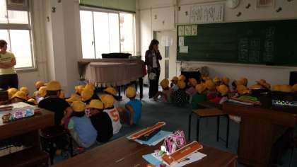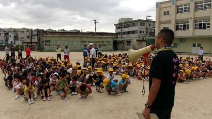子どもたちは、「おはしも」お(押さない)は(走らない)し(しゃべらない)も(もどらない)の注意をしっかり聞いて行動できていました。