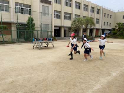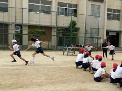 バトンのつなぎ方は、練習の成果でぐんぐん上達しています。抜いたり抜かれたり白熱のリレーとなりました!