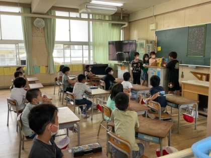 四年生の国語科の学習の一環ですが、一年生にとっても、他学年と関わるチャンス。
