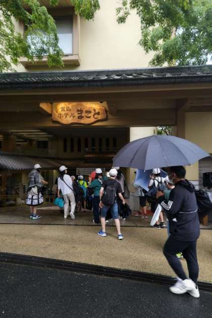 今夜のホテル、まことに到着しました。開舎式をして部屋に荷物をいれました。