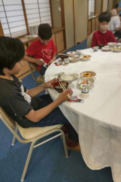 朝食です。渡司先生の話を聞いてから『いただきます!』