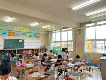 箱の形や大きさを動物の身体の特徴に見立てるというめあてを意識しながら、動物を作りました。