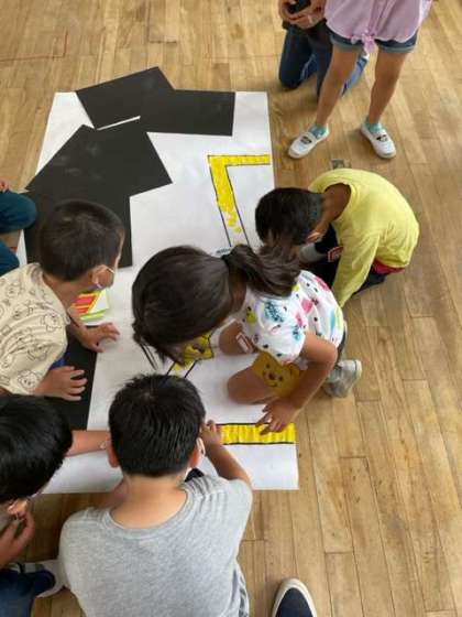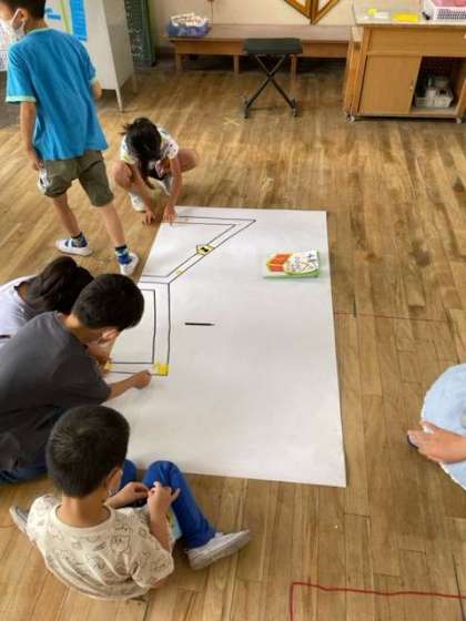 木曜、金曜に学級目標を掲示するための学級旗を作成しました。