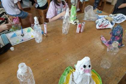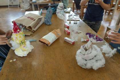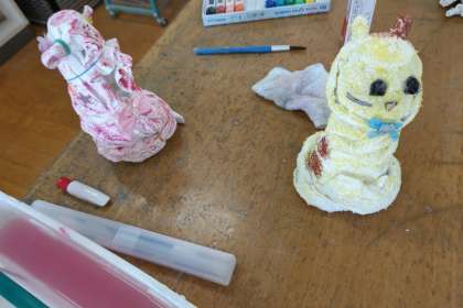 液体粘土を使ってタオルを固め、工夫して自分の塔を作り上げます。カワイイ塔や面白い塔、立派な塔など様々です。