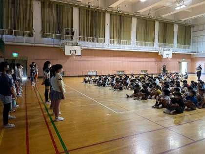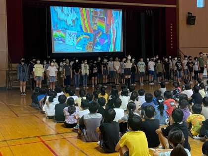 今日は6年生による修学旅行での経験や学習を報告する集会を行いました。