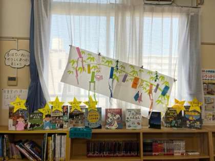 もうすぐ七夕ですね。図書室にあるお話読みにきてください。