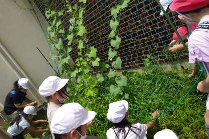 今日は、みんなで雑草を抜いて、花や小さな実の観察をしました。