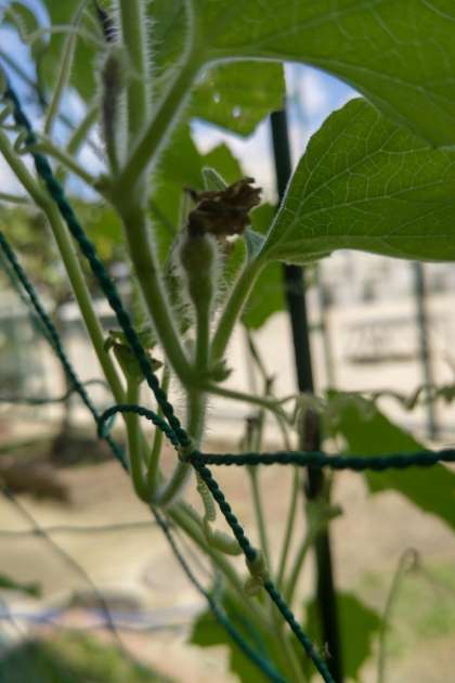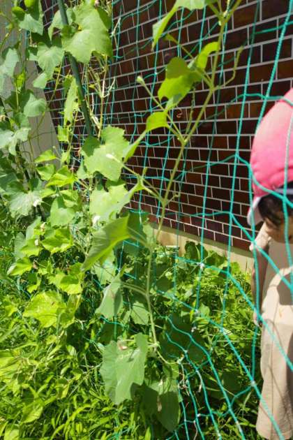 春に種を植えたヘチマとひょうたんが育っています。