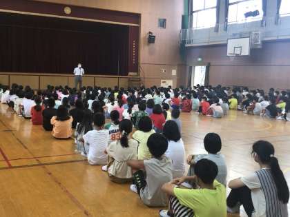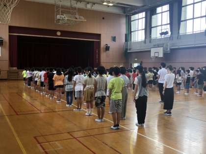 式では良い姿勢で教頭先生や森先生の話を聞くことができました。蝉の鳴き声に負けない元気で明るい声で校歌も歌いましたね!