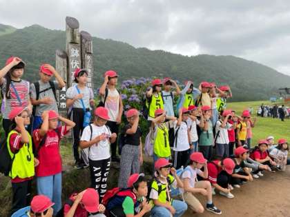 ?登山の前にモニュメントで写真撮影!みんないい顔してます。