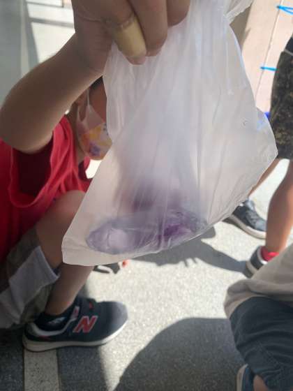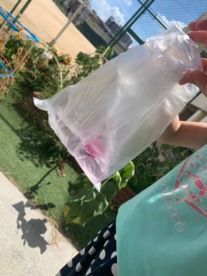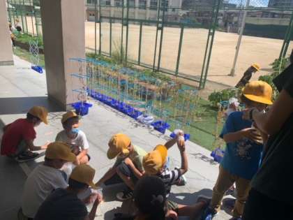 ?生活科では、朝顔の花びらを使って色水を作りました。