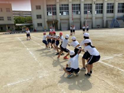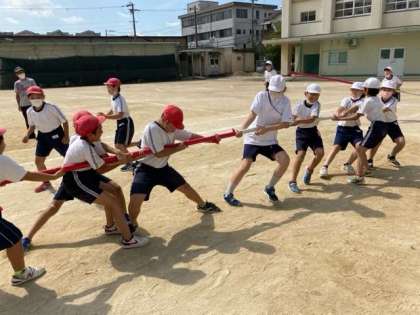 はじめての「棒引き」の練習です。本番さながらの盛り上がりです。