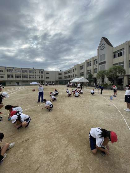 6時間目に、4、5、6年生が全員で運動会の準備をしています。