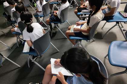 着いてから、早速しおりを開いて学習姿勢もバッチリです!!