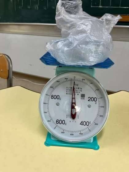 なかなか1kgにならず、水を減らしたり増やしたり…。数字が近くなると意外と重たいことに驚いていました。