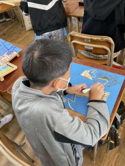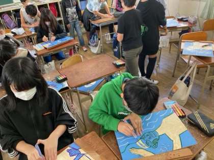 作品展に向けて版画を制作しています。一彫り一彫り丁寧に作業をしています。力作を作品展でご覧になってください。