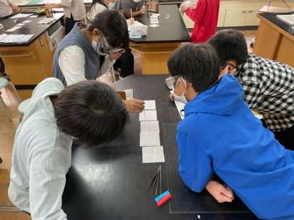 前回見た目やにおい、熱を加えた様子で区別した水溶液を、今回はリトマス紙を使って区別する実験を行いました。
