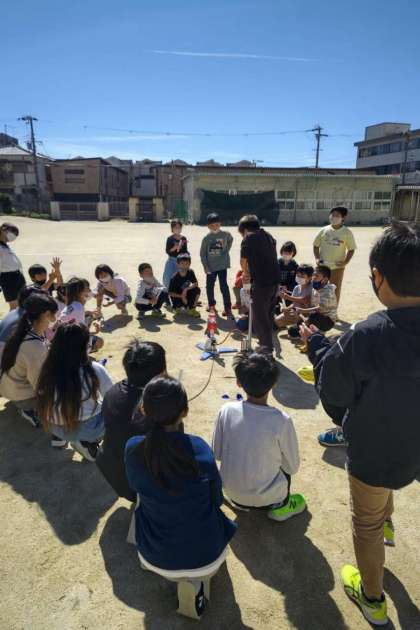 まとめとして、水鉄砲や空気鉄砲をし、最後にとじこめた空気に力を加えてペットボトルロケットを飛ばしました。