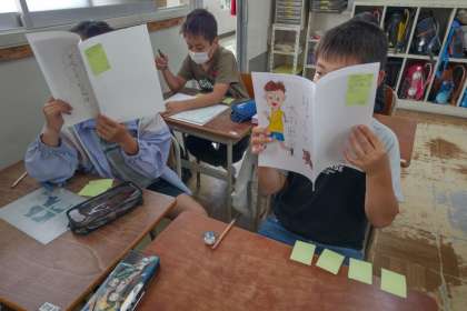 今日は友達の物語を読み合い、感想を伝えます。おうちの人にも感想をもらいたい!とのことなので、よかったら聞いたあと感想を伝えてやってくださいね。