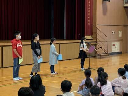 今日は2.3.5.6年生の代表児童の作文発表がありました。