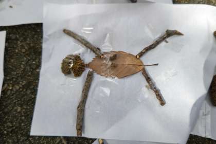 スマイル班で協力して秋の自然のものを利用して葉っぱ星人を作りました。