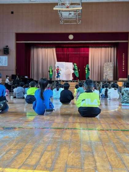 ジャックと豆の木のストーリーに色々な楽器の生演奏が融合され、リズムやテンポを体験しながら楽しい時間となりました。