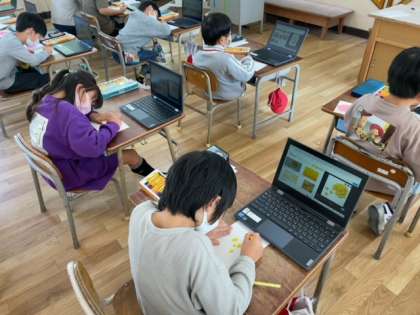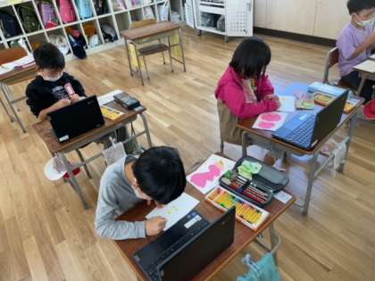 鰹節からは一人一台端末を使い、食材の画像検索を行い、自分で選んだ画像を参考に描きました。