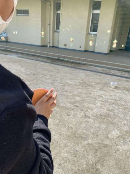 鏡の反射を利用した実験を運動場で行いました。