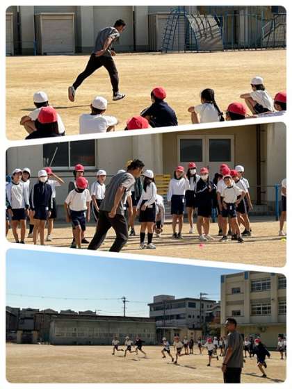 2・3時間目に、陸上競技のトップアスリートだった荒川大輔さんに来校いただき、講演と実技指導をしていただきました。