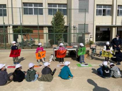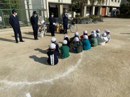 ?警察の方に来ていただき、交通安全指導をしていただきました。