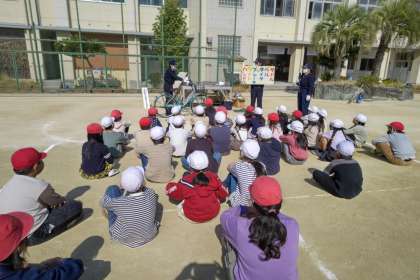 警察の方に来ていただき、自転車を使っての交通安全指導がありました。