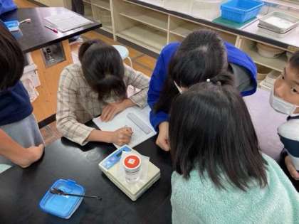 ものが水に溶けた時、その重さはどうなるのか?実験で調べました。予想通りの児童がほとんどでしたが、予想とちがった児童もいました。いずれにせよ、結果をしっかりとまとめました。