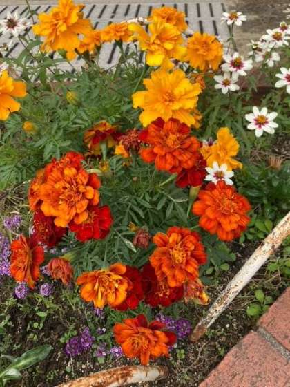 西淀川区役所からいただいた苗が、きれいな花を咲かせています。これからも、心をこめてお世話をしていきます。